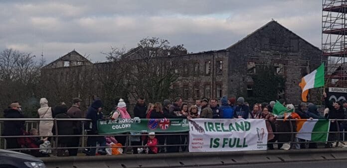 Proeminentul activist anti-imigrație Malachy Steenson s-a adresat, de asemenea, adunării de protestatari, repetând ceea ce a spus săptămâna trecută la un miting la Dublin, și anume că grupul a “schimbat terenul politic în țară”.