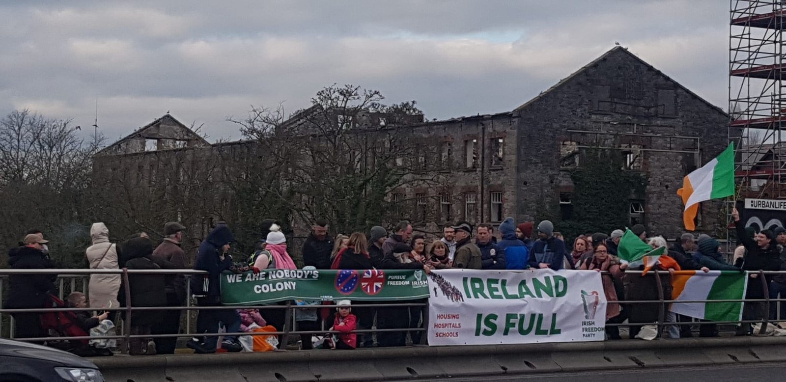 Aproximativ 60 de protestatari anti-imigrație s-au adunat pe o parte a podului din orașul Co Louth la ora 14:00, pentru a descoperi că un contra-protest de aproximativ 30 de persoane s-a adunat pe partea opusă.