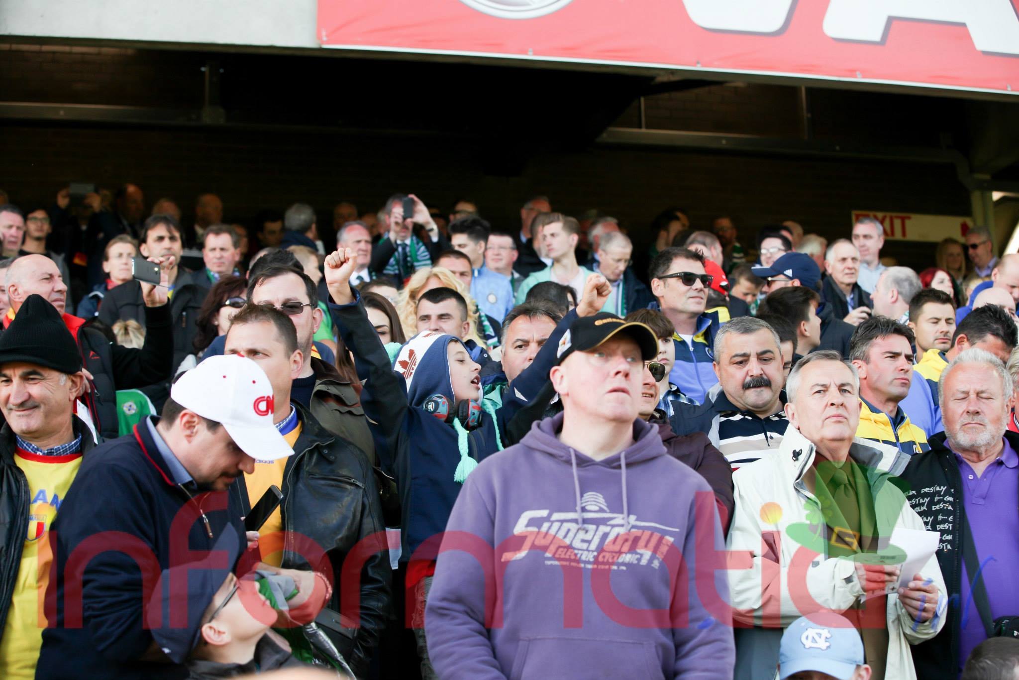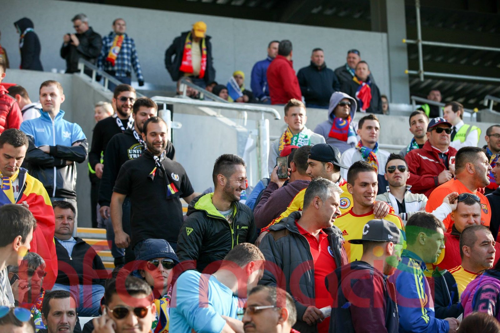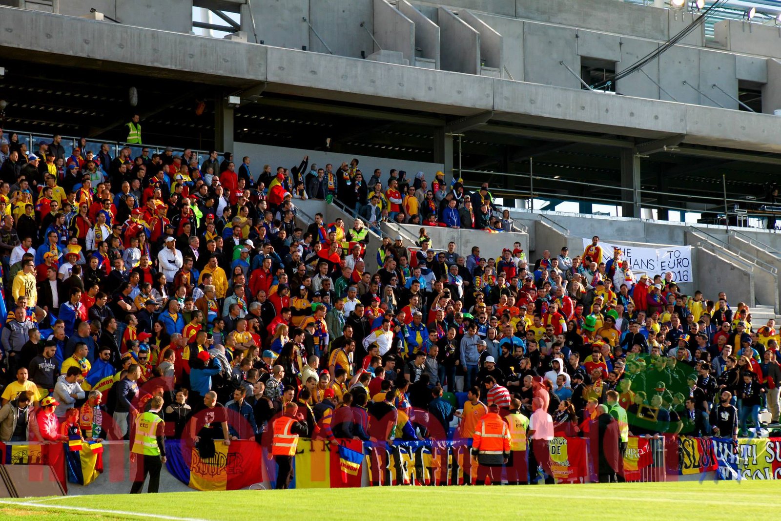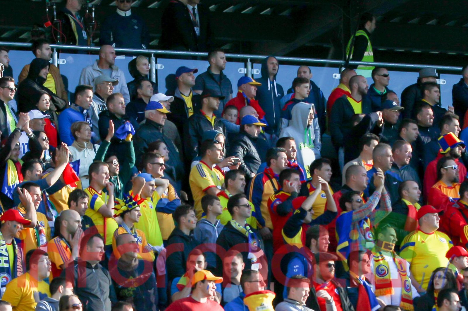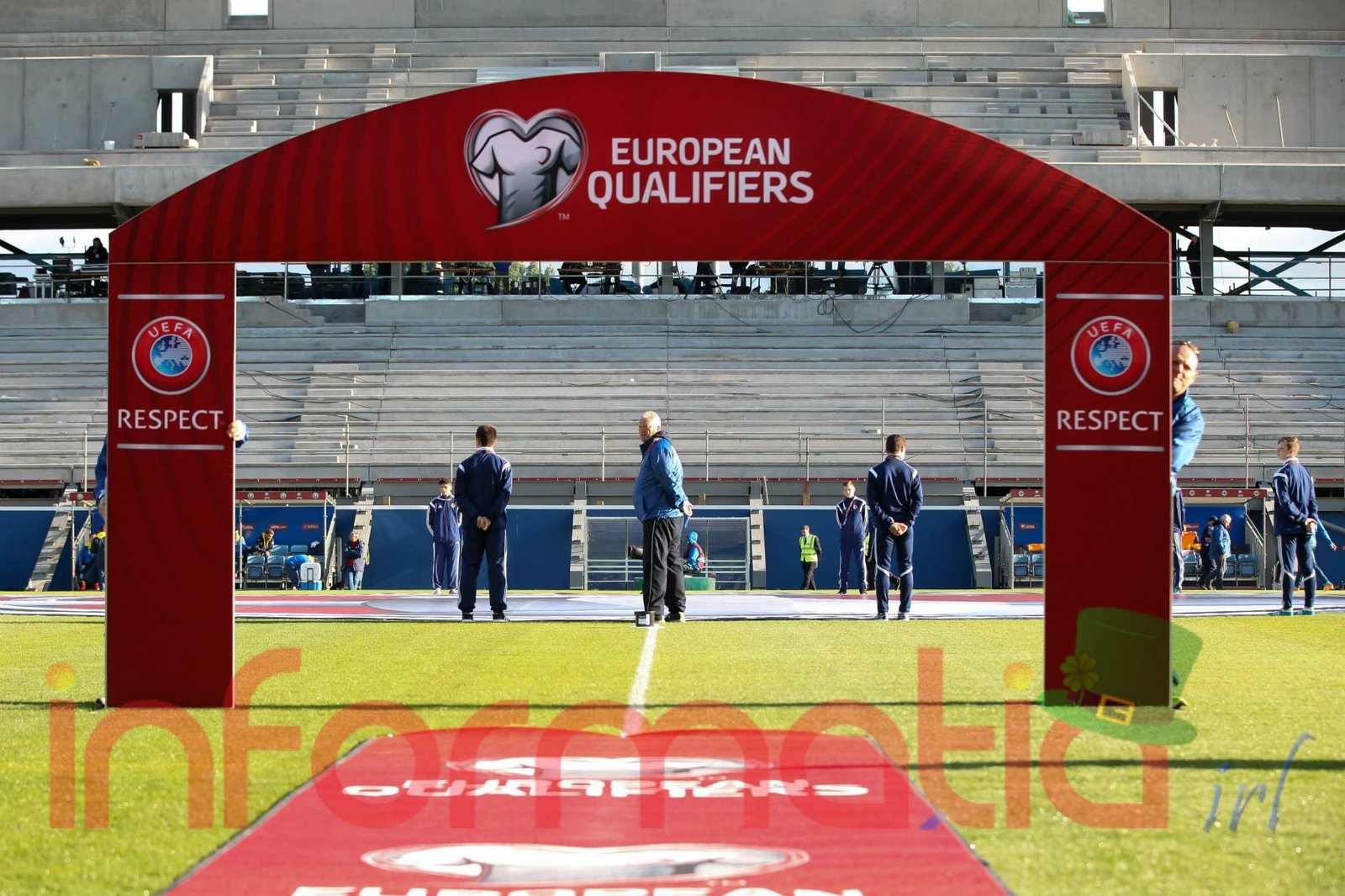 9.39 Jucatorii celor doua echipe ies pe teren, Jucatorii nostri in galben complet, irlandezii cu tricouri verzi si sorturi albe. Acum se canta imnul Romaniei