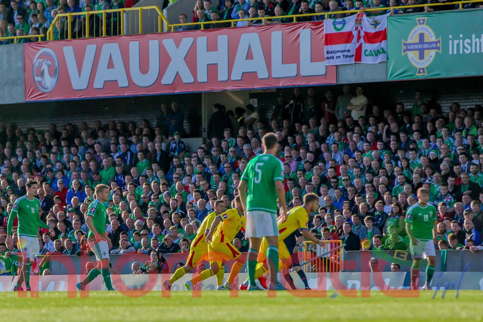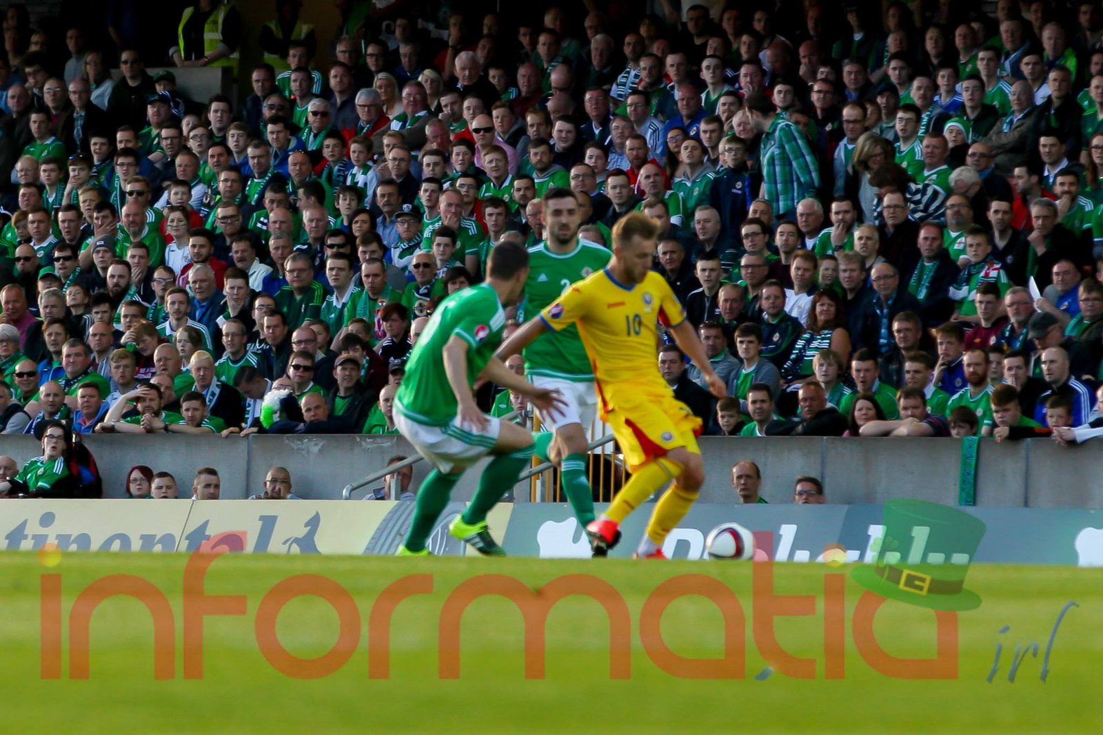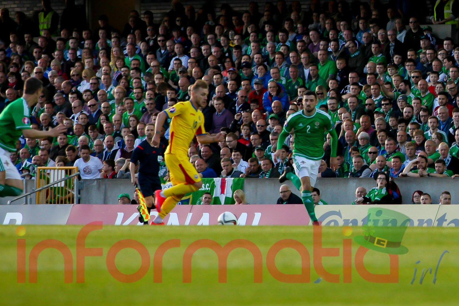 9.51 Nord-Irlandezii pleaca pe contraatac, dar pierd minega in careu, aut de poarta