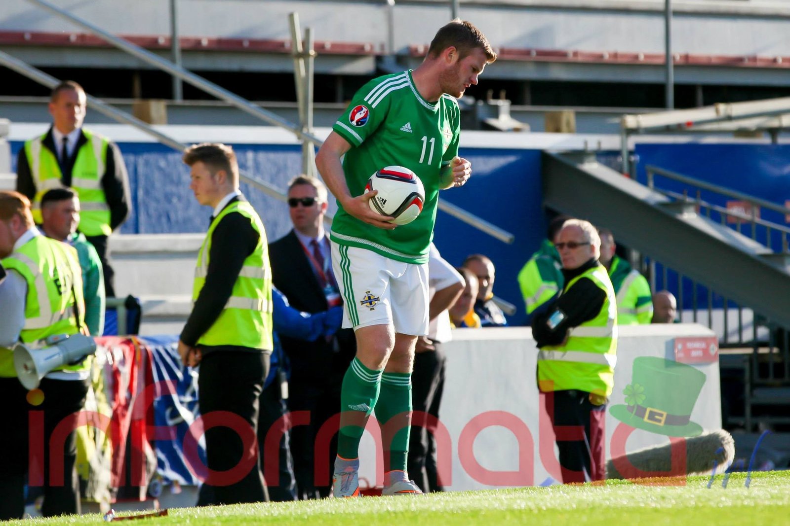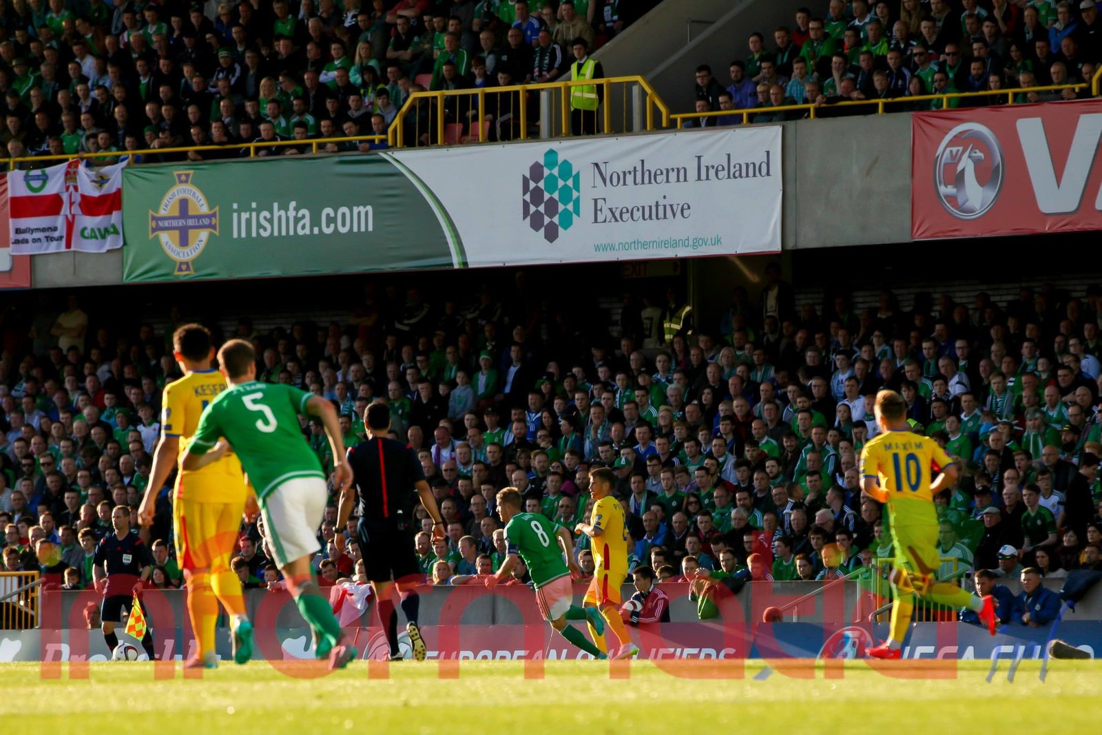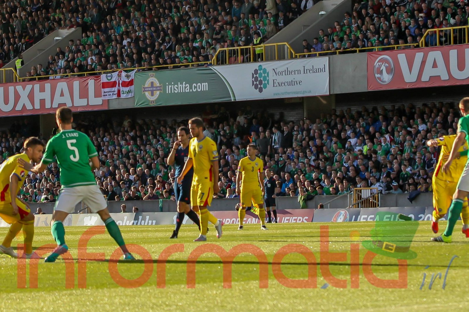 9.51 Nord-Irlandezii pleaca pe contraatac, dar pierd minega in careu, aut de poarta