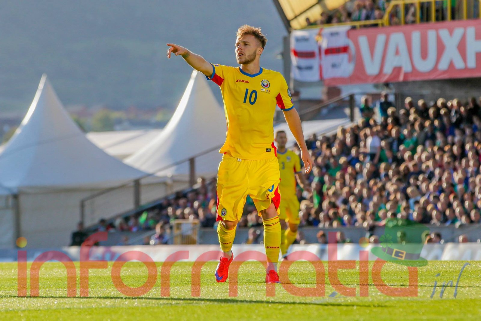 10.27 Cea mai periculoasa faza a nord-irlandezilor, Tatarusanu scoate lovitura de cap a lui Jonny Evans, fundasul lui Manchester United