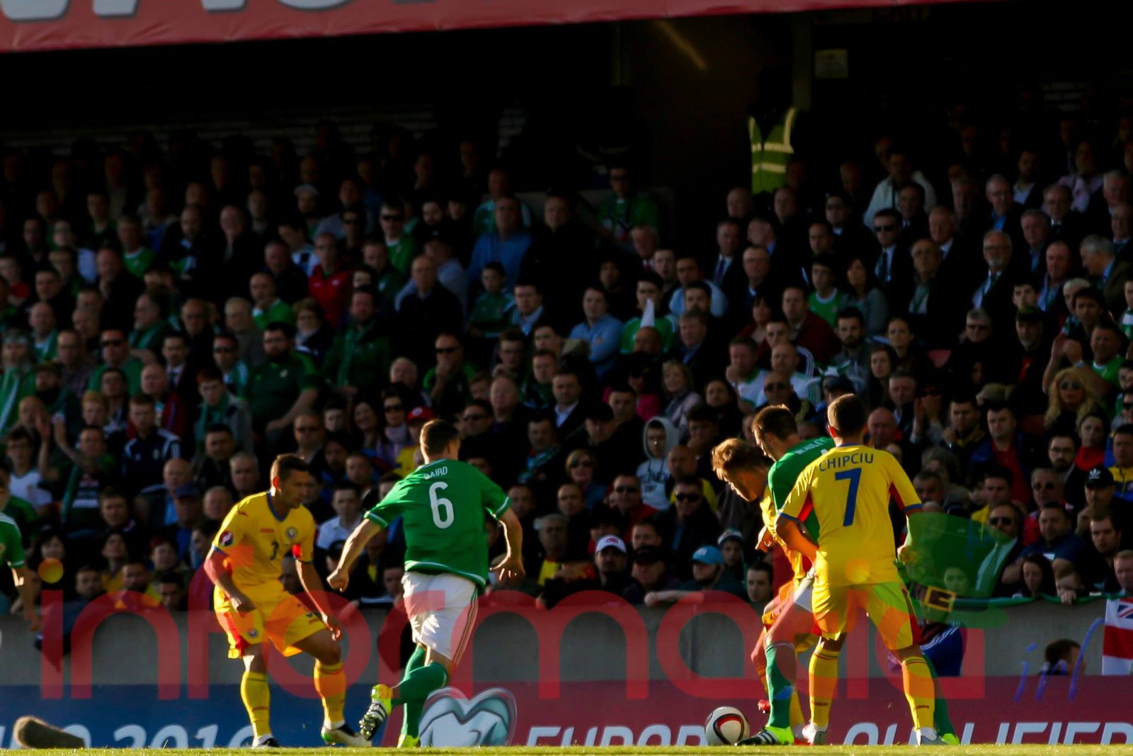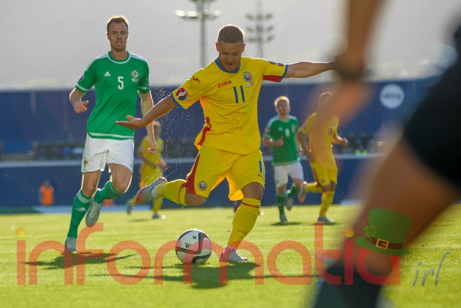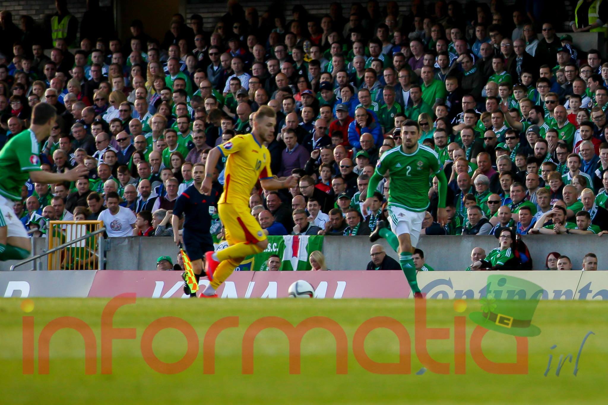 10.10 Torje, cade chiar langa marginea careului nord-irlandez dupa o faza frumoasa si pierde mingea. La prima vedere a parut fault