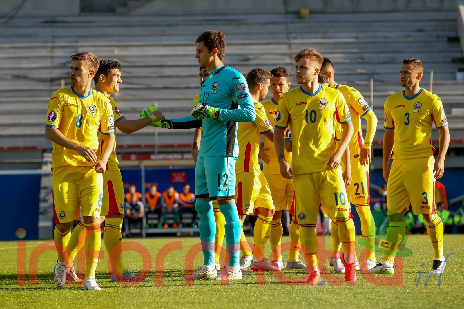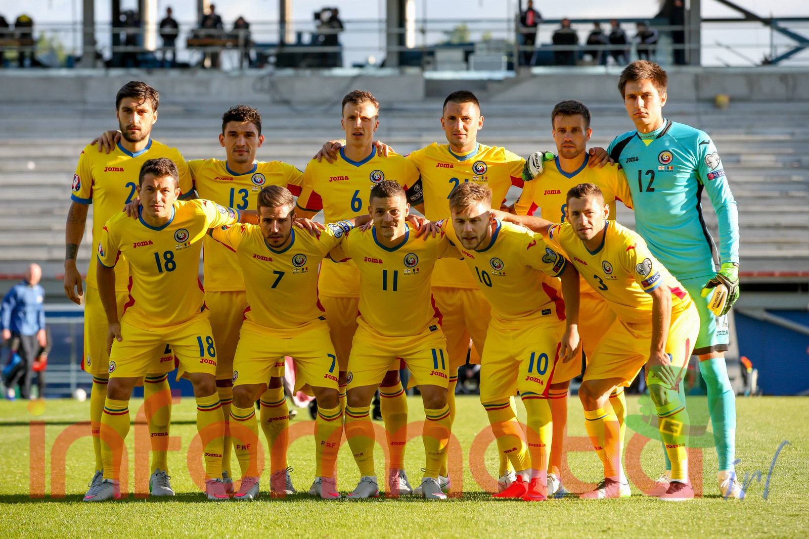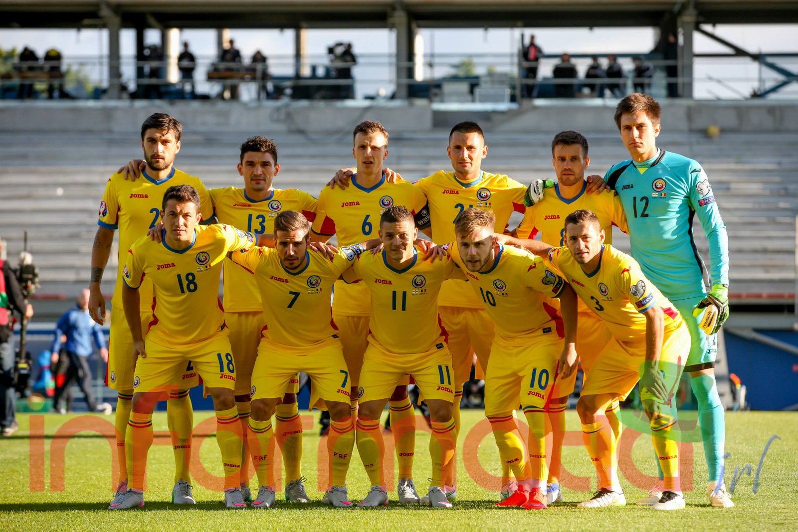 Romania: 12. Ciprian Tatarusanu – 2. Paul Papp, 6. Vlad Chiriches (capitan), 21. Dragos Grigore, 3. Laszlo Sepsi – 18. Andrei Prepelita, 8. Mihai Pintilii – 11. Gabriel Torje, 10. Alexandru Maxim, 7. Alexandru Chipciu – 13. Claudiu Keseru. Selectioner: Anghel Iordanescu.