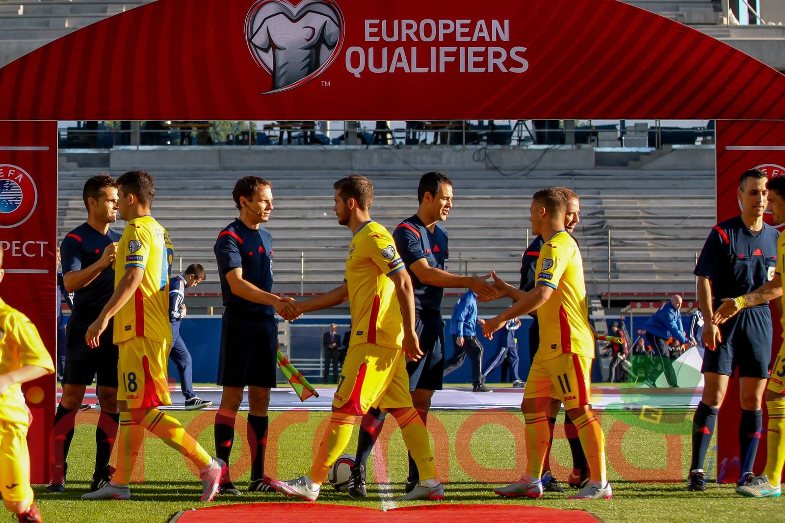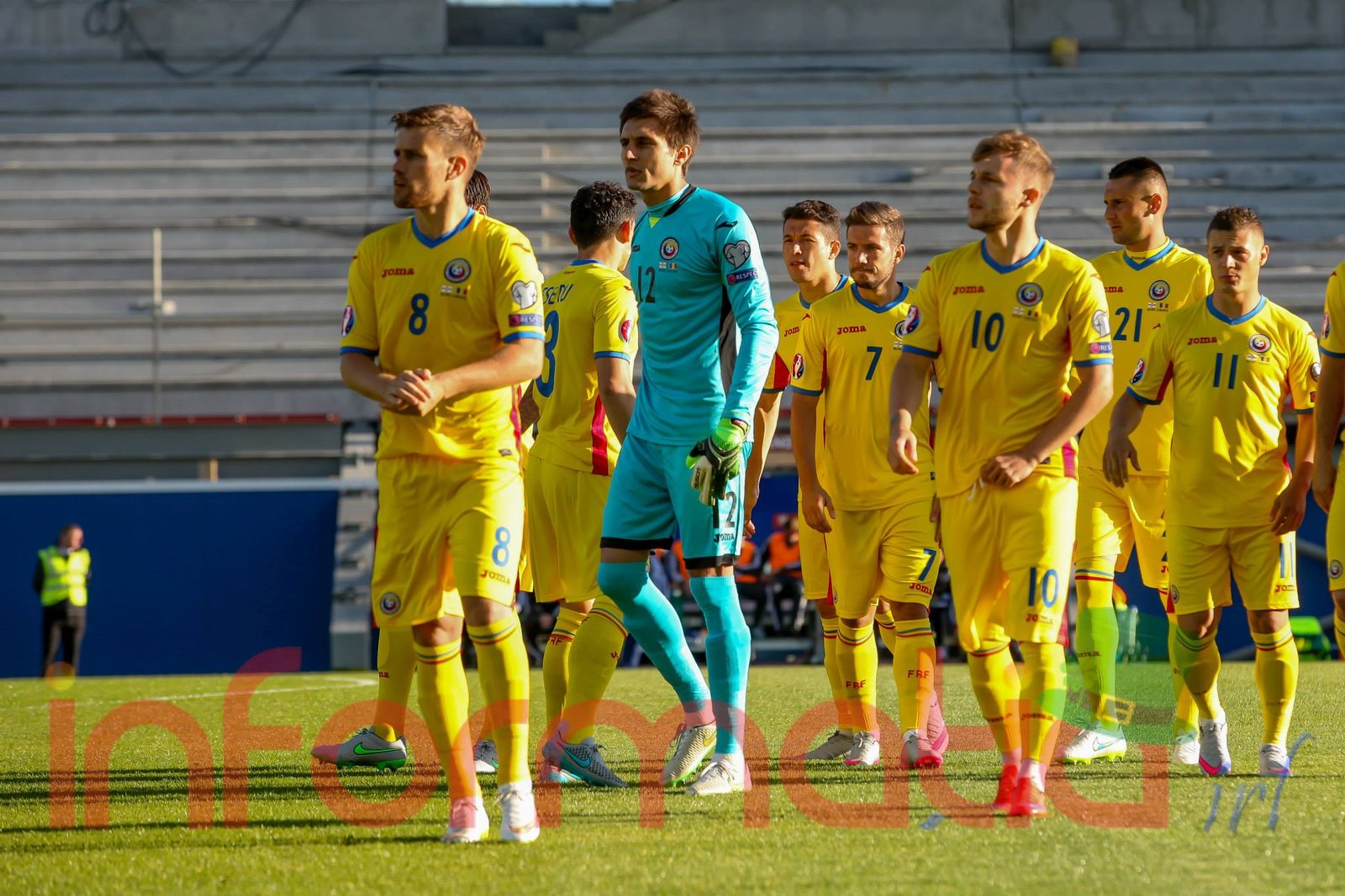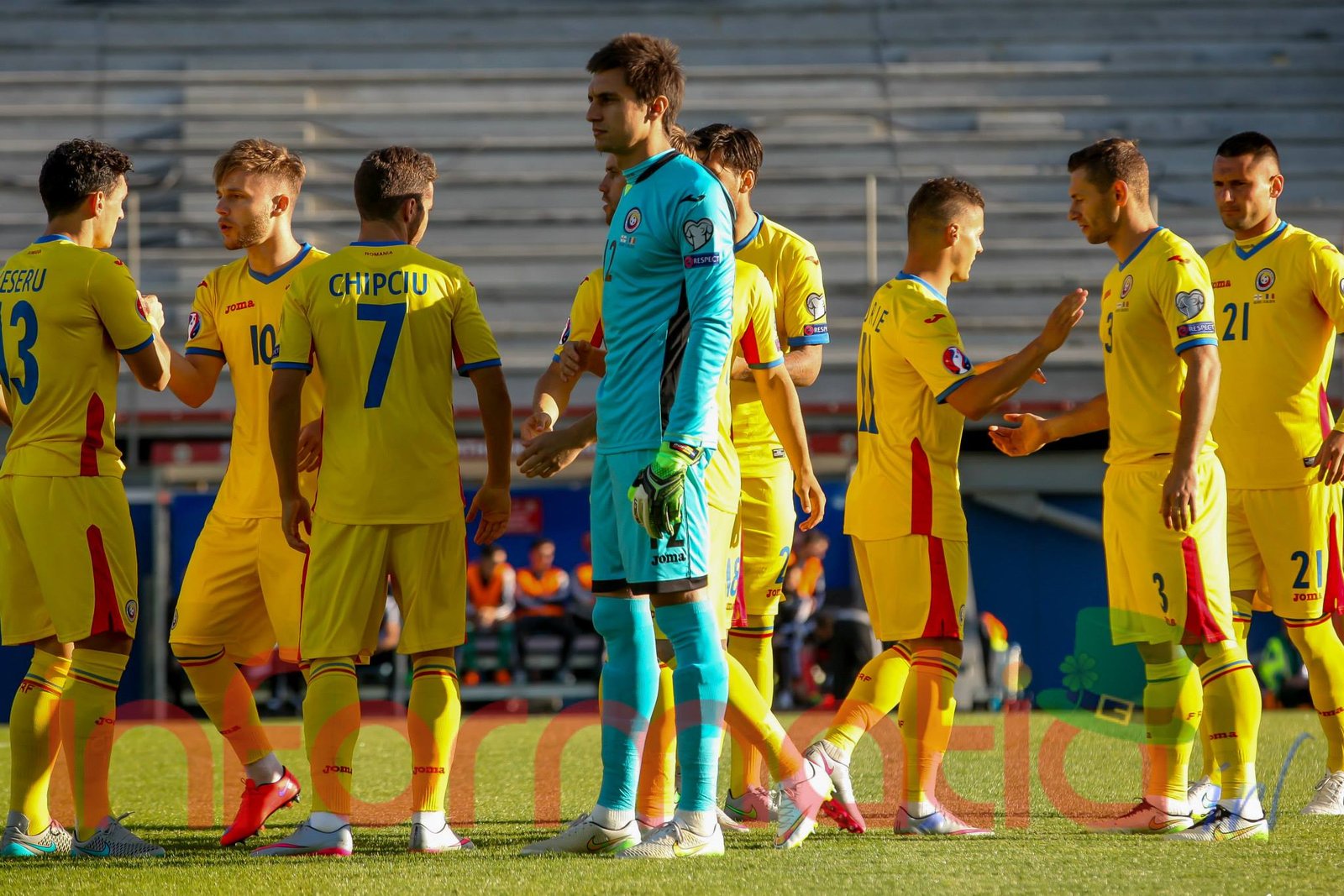 Romania: 12. Ciprian Tatarusanu – 2. Paul Papp, 6. Vlad Chiriches (capitan), 21. Dragos Grigore, 3. Laszlo Sepsi – 18. Andrei Prepelita, 8. Mihai Pintilii – 11. Gabriel Torje, 10. Alexandru Maxim, 7. Alexandru Chipciu – 13. Claudiu Keseru. Selectioner: Anghel Iordanescu.