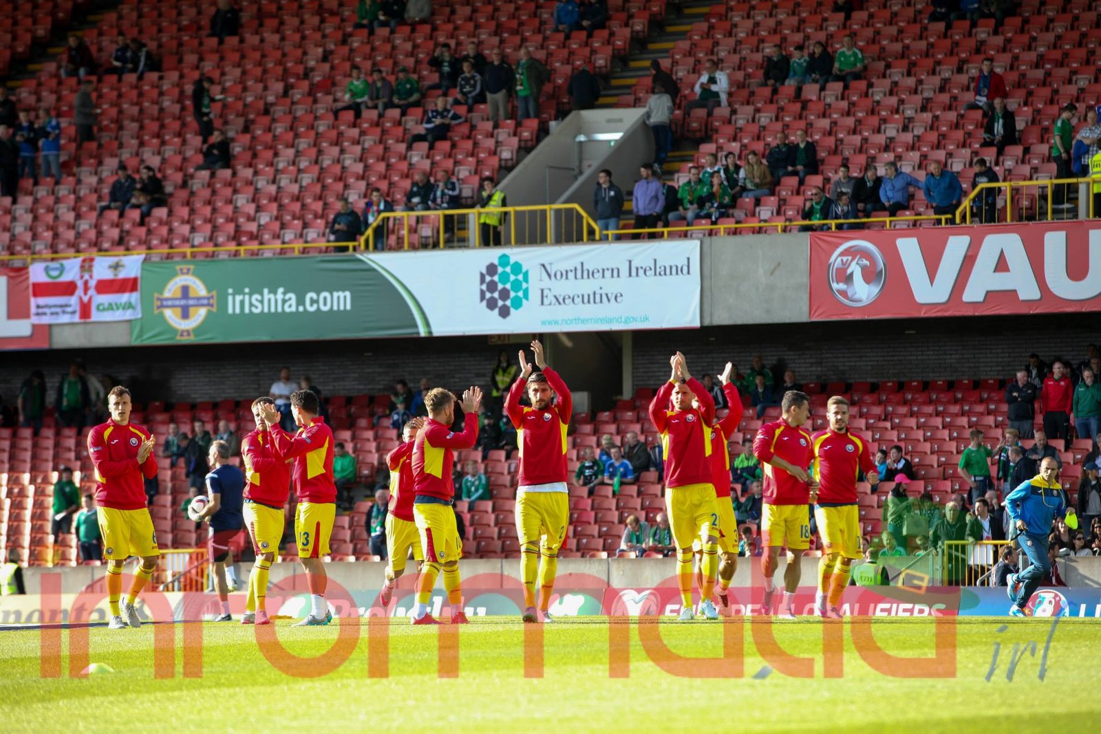 Rezerve: 12. Trevor Carson, 23. Maik Taylor – 3. Shane Ferguson, 17. Paddy McNair, 18. Aaron Hughes, 20. Craig Cathcart, 13. Corry Evans, 15. Paddy McCourt, 21. Josh Magennis, 7. Niall McGinn, 9. Will Grigg, 22. Caolan Lavery.