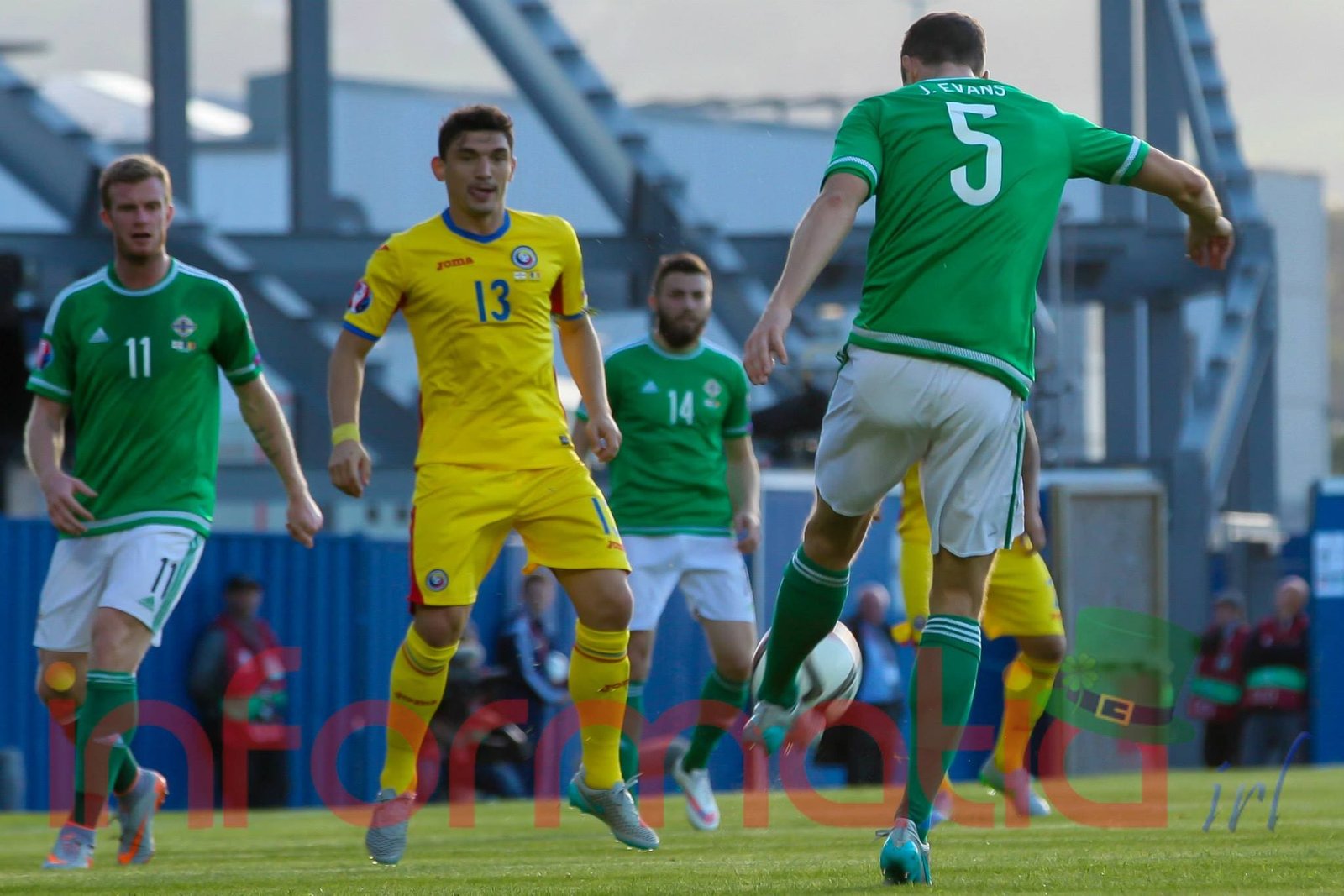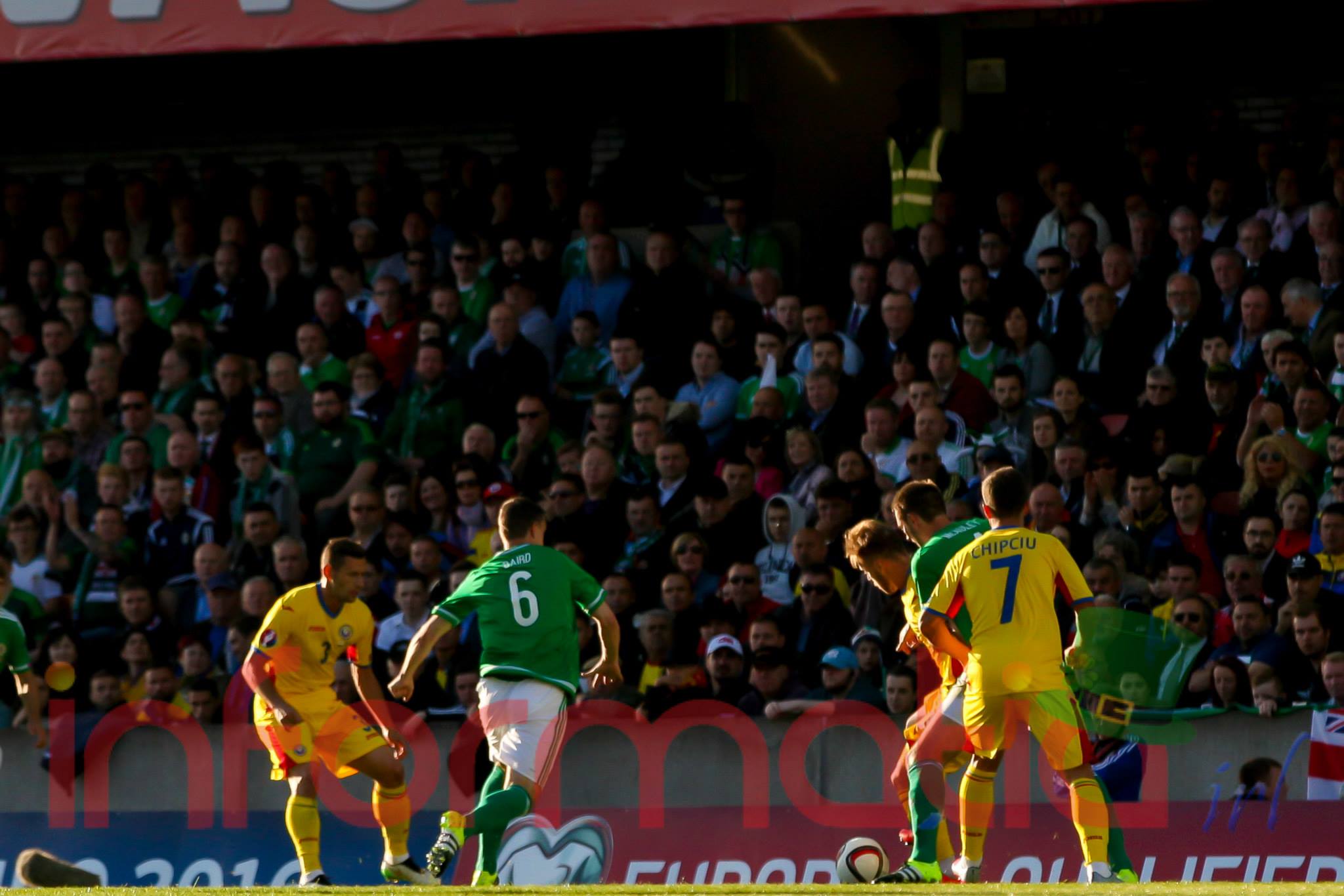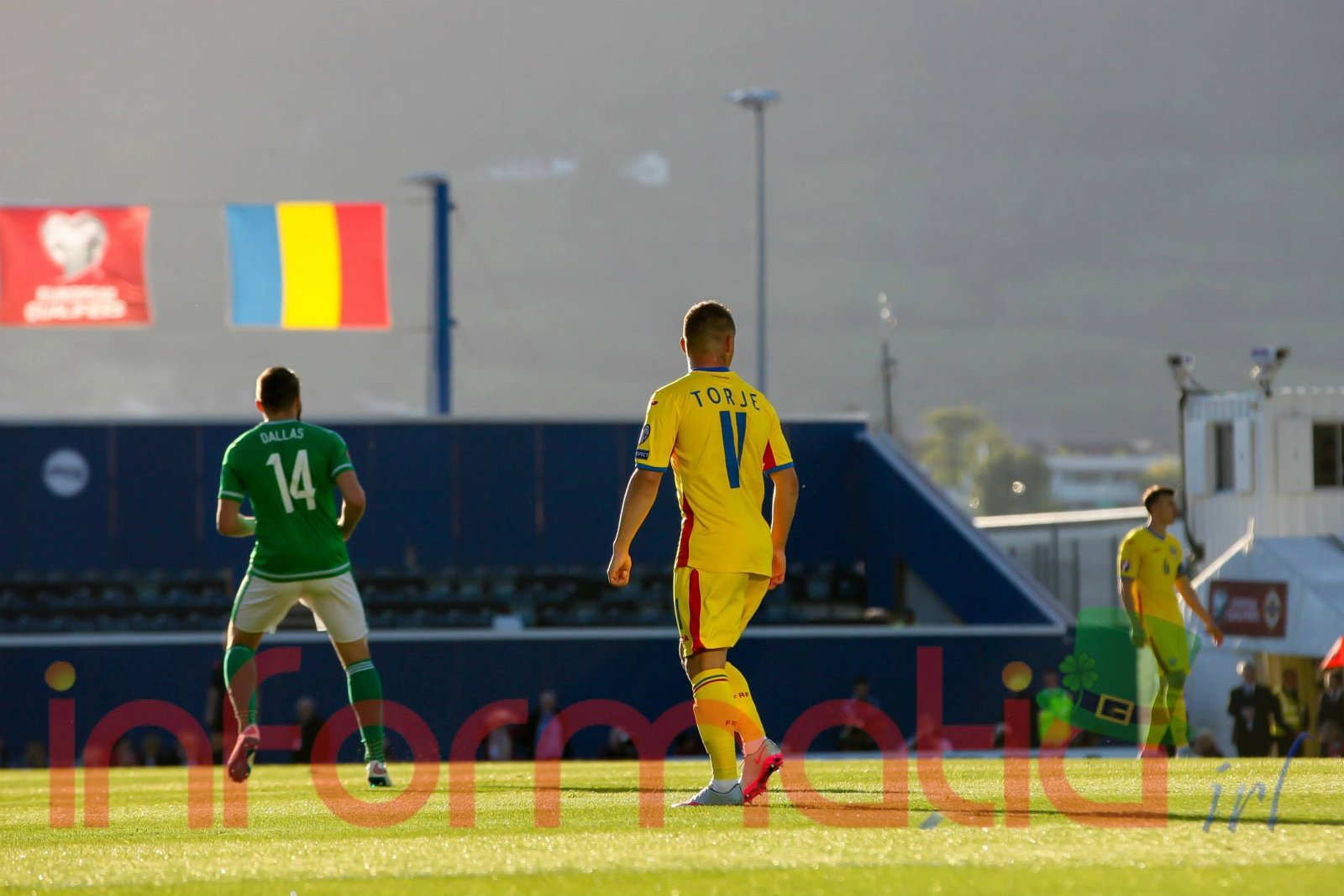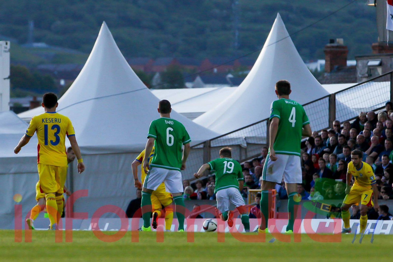 11.18 Torje, obligat sa faulteze, ia cartonas galben, dupa ce nord-irlandezii au respins o preluare slaba a lui Florin Andone