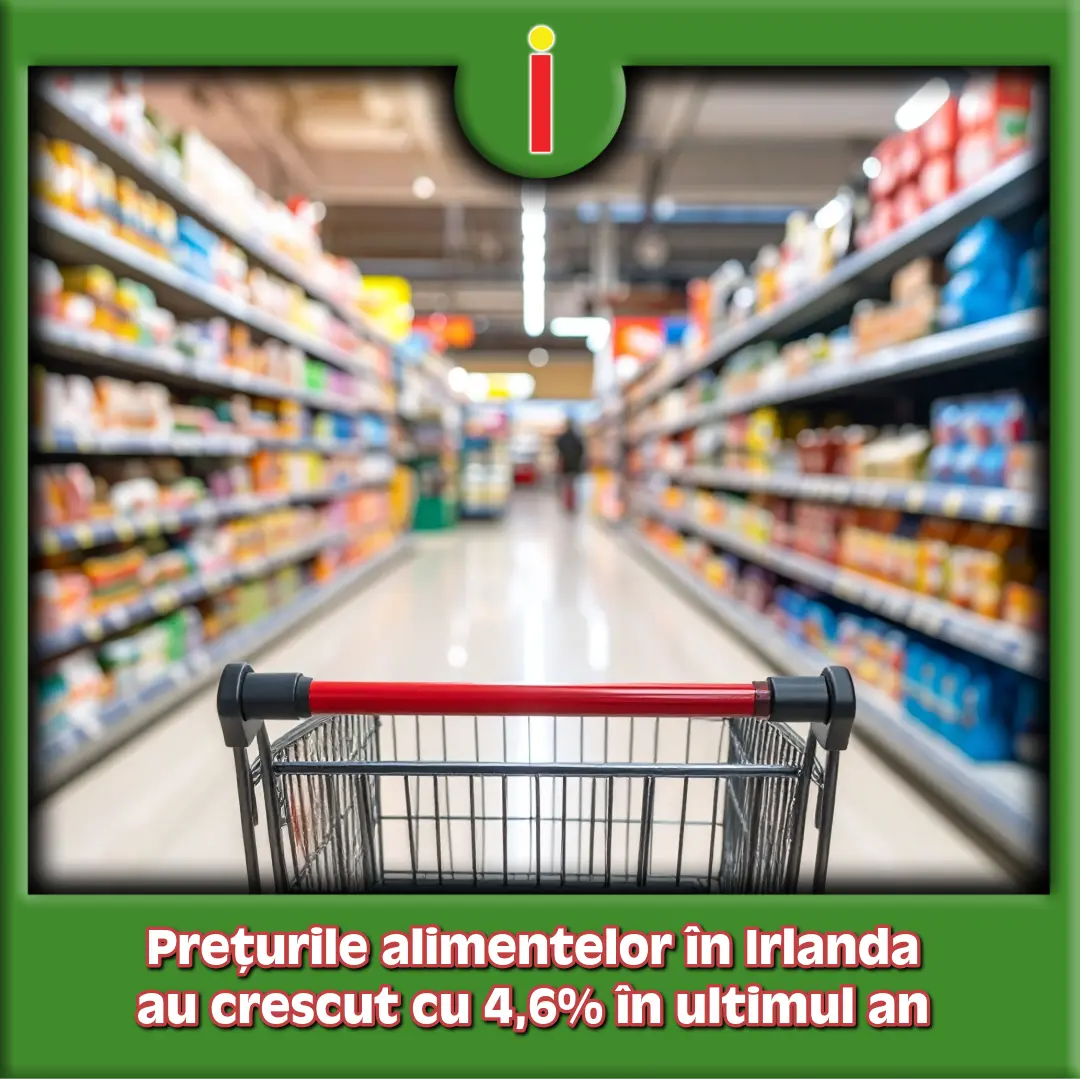 Prețurile alimentelor din Irlanda au crescut cu 4,6% în ultimele 12 luni, potrivit unei estimări rapide publicate de Central Statistics Office (CSO). În ultima lună, alimentele s-au scumpit în medie cu 0,2%, accentuând tendința de majorare constantă care afectează consumatorii de toate vârstele și categoriile sociale.