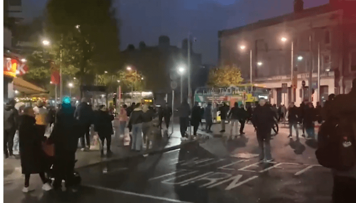 Tot traficul și transportul public pe O’Connell Street au fost blocate de protestatarii adunați în apropierea locului unde trei copii și o femeie au fost înjunghiați pe Parnell Square.