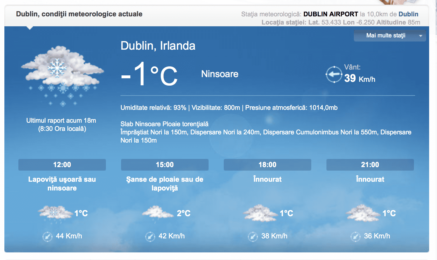 Din postările făcute de mai mulți români din Irlanda se pare că stratul cel mai mare de zăpadă în această dimineață ar fi în Kildare. Sursa rte.ie