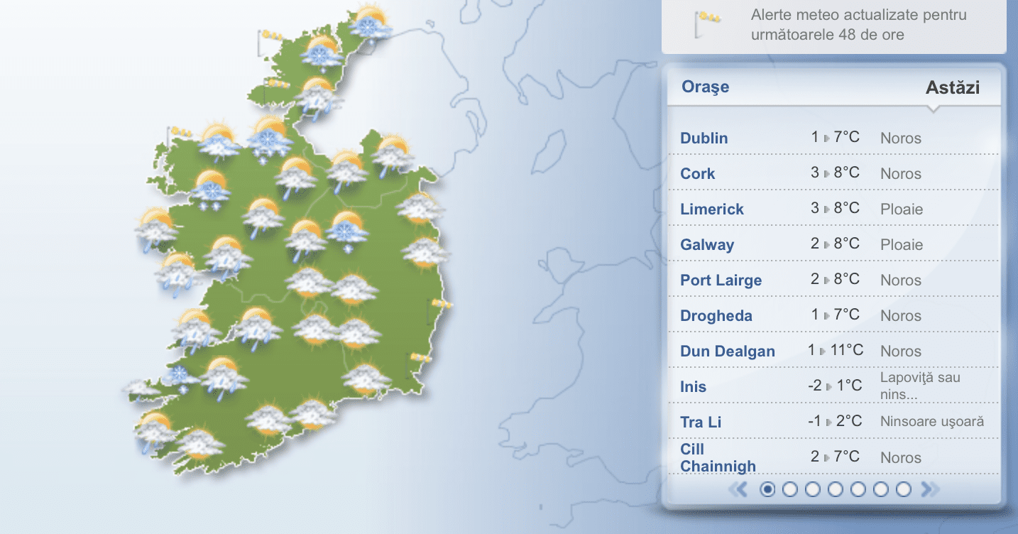 Șoferii sunt avertizați să fie foarte atenți în această dimineață datorită gheții de pe carosabil. Ieri a plouat iar peste noapte temperaturile scăzute au dus la apariția gheții. Met Eireann avertizează că temperaturile vor scădea și mai mult în următoarele zile.
