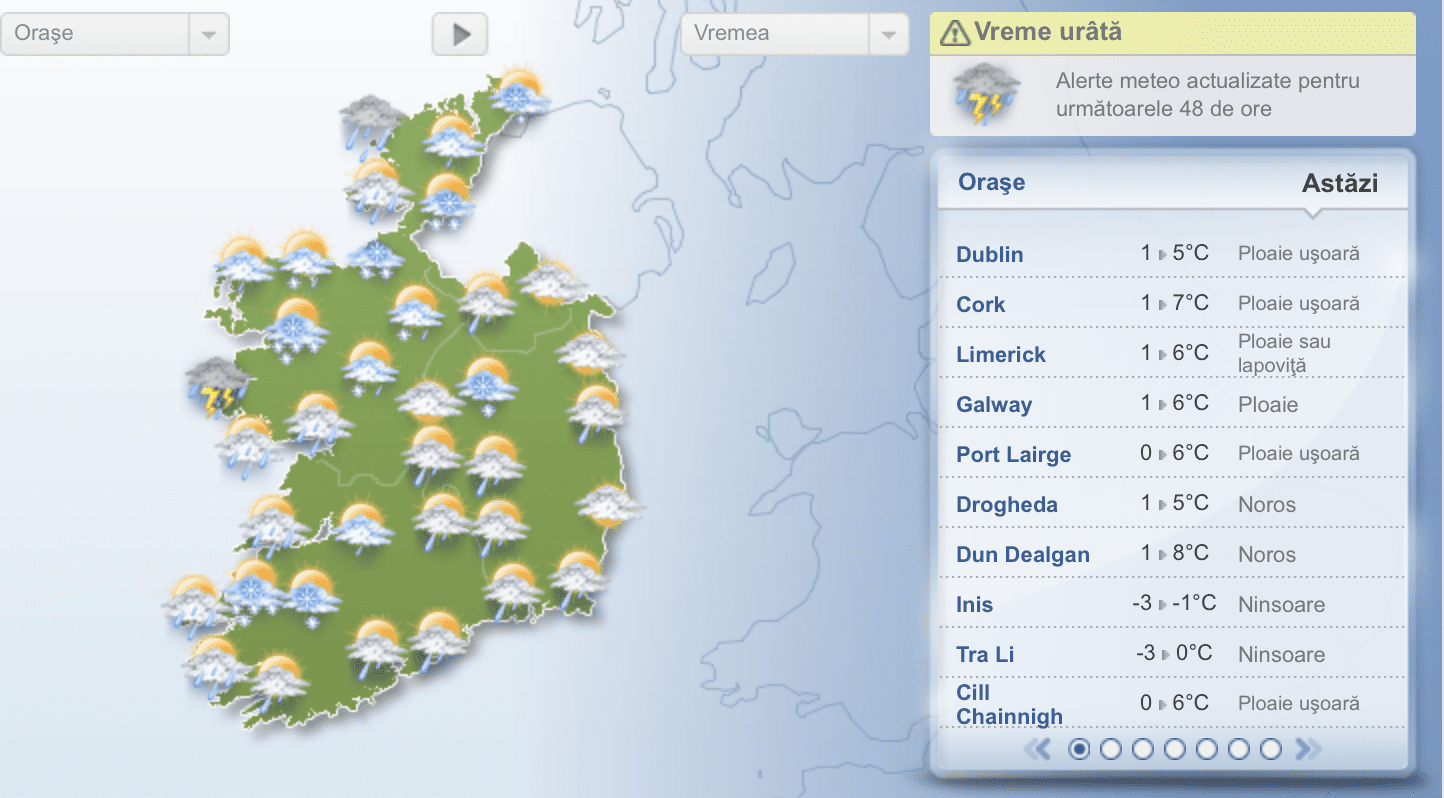 Șoferii sunt avertizați să conducă prudent odată cu intrarea în vigoare a unui cod galben pentru toată țara. Codul galben emis în această dimineață avertizează că vor fi temperaturi scăzute până sâmbătă la prânz. Ulster și Connaght sunt zonele cele mai predispuse la fenomenele de iarnă inclusiv ninsori răzlețe. Autoritățile sfătuiesc șoferii să încerce să folosească în această perioadă drumurile mari, pentru că ele sunt primele tratate cu sare și nisip pentru a reduce efectele înghețului. Sursa independent.ie