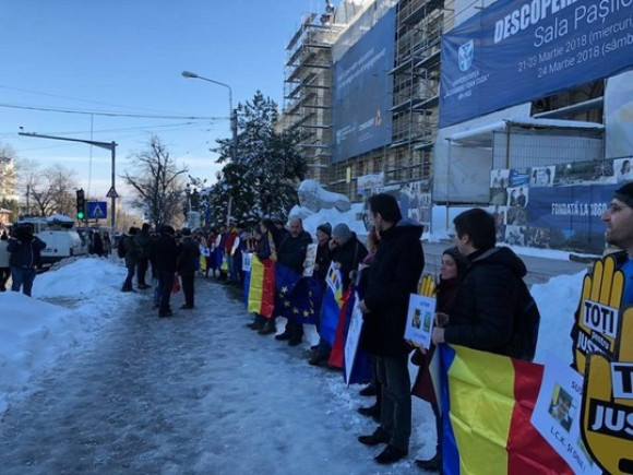 Participanţii au format un lanţ uman în jurul clădirii universităţii. Sursa digi24.ro