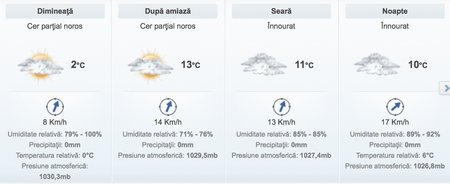 O zi cu cer variabil mai mult noros. Temperaturile maxime ajung la aproximativ 14 grade.