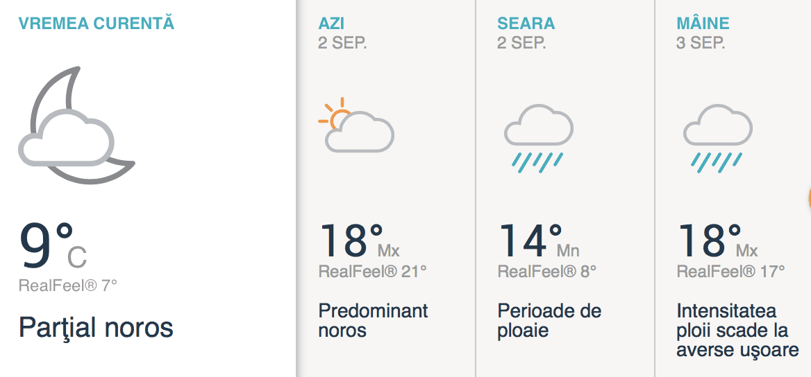 Astăzi va fi o zi cu cer mai mult noros. De la ora 6 intră în vigoare un cod galben de ploaie. Temperaturile maxime astăzi ajung la 18 grade.