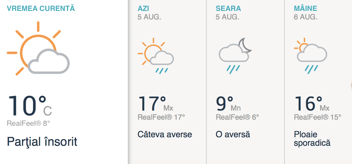 Astăzi va fi o zi cu cer variabil și este posibilă o aversă de ploaie. Temperaturile maxime ajung la 17 de grade.