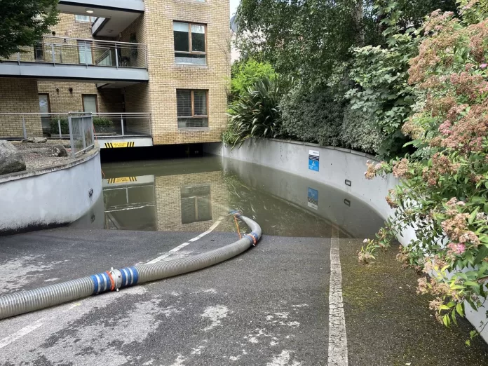 Apa părea să fie încă până la tavanul subsolului aseară, în timp ce Brigada de pompieri din Dublin și Consiliul orașului Dublin continuau să pompeze apa.