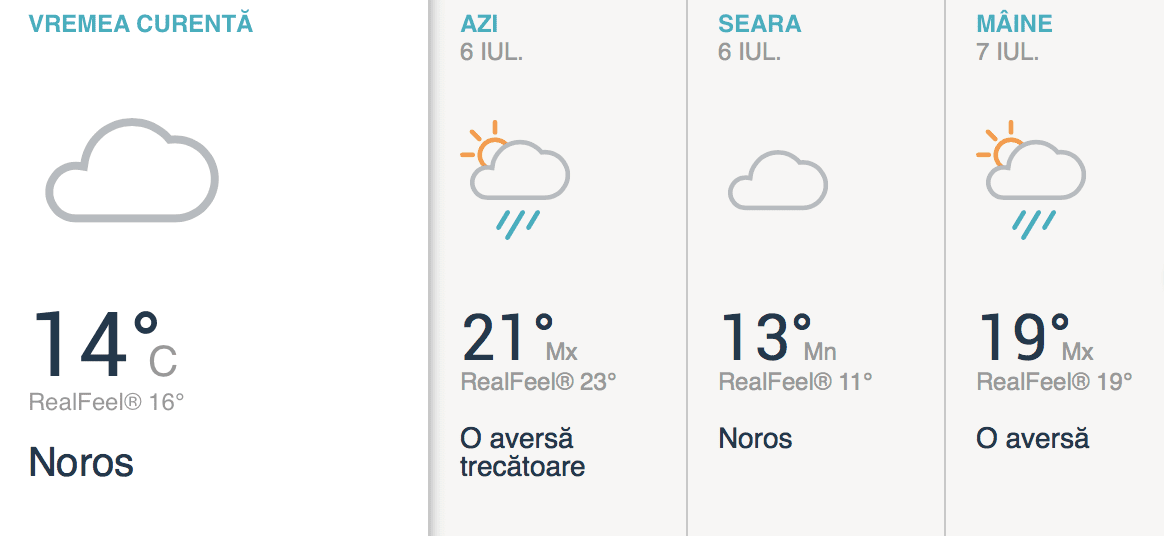 O zi caldă cu cer variabil și posibil o ploaie trecătoare. Temperaturile maxime ajung la 19-21 grade.