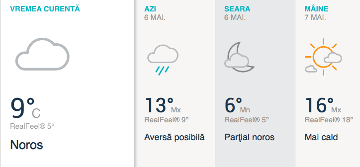 ✤ O zi cu cerul variabil, mai mult noros și este posibilă chiar și o aversă de ploaie. După amiaza va fi mai frumoasă și este posibil să avem câteva perioade prelungite de soare. Temperaturile maxime ajung la 16 grade.