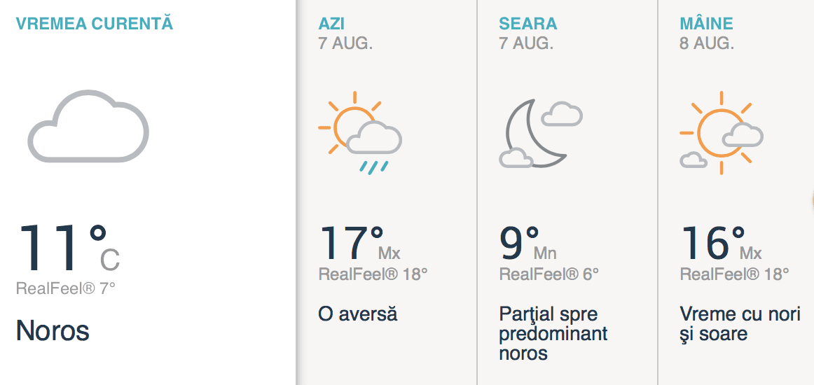Astăzi va fi o zi cu cer variabil și este posibilă o aversă de ploaie. Temperaturile maxime ajung la 17 de grade.