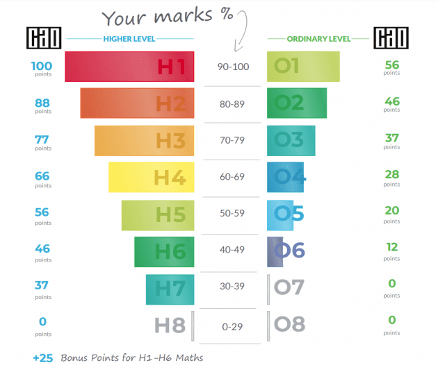 Pentru studenții de la nivelul superior, notele disponibile variază de la H1 la H8, pentru studenții de la nivelul obișnuit, notele disponibile variază de la O1 la O8, iar pentru studenții de la nivelul de bază, doar pentru examenele de irlandeză și matematică, notele variază de la F1 la F8.