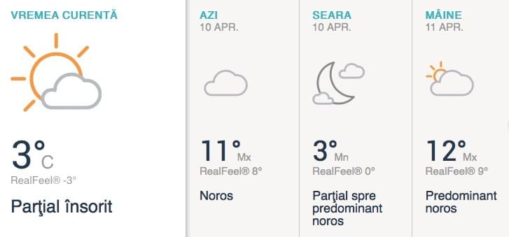 ✤ Astăzi o zi mai rece decât în weekend cu cer mai mult noros. Temperaturile maxime astăzi nu vor depăși 12 grade. La această oră în Dublin sunt doar 3˚C (RealFeel -3˚C).