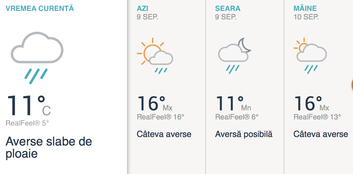 Astăzi va fi o zi cu cer variabil și câteva averse de ploaie. Temperaturile maxime astăzi ajung la 16 grade.