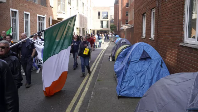 Demonstranții au mărșăluit spre Mount Street Lower, unde au fost ridicate zeci de corturi într-o altă tabără improvizată pentru migranții fără adăpost.