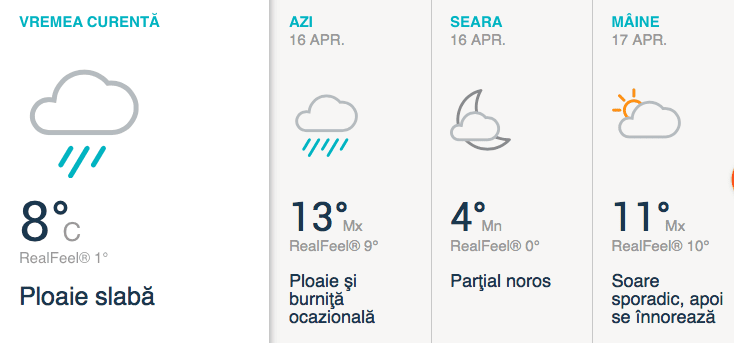 ✤ Astăzi o zi cu cerul mai mult închis și ploi. Temperaturile maxime vor ajunge la 13 grade.