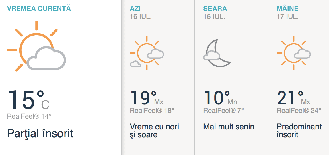 O zi cu cer variabil, în general frumoasă. Temperaturile ajung astăzi la 20 de grade.