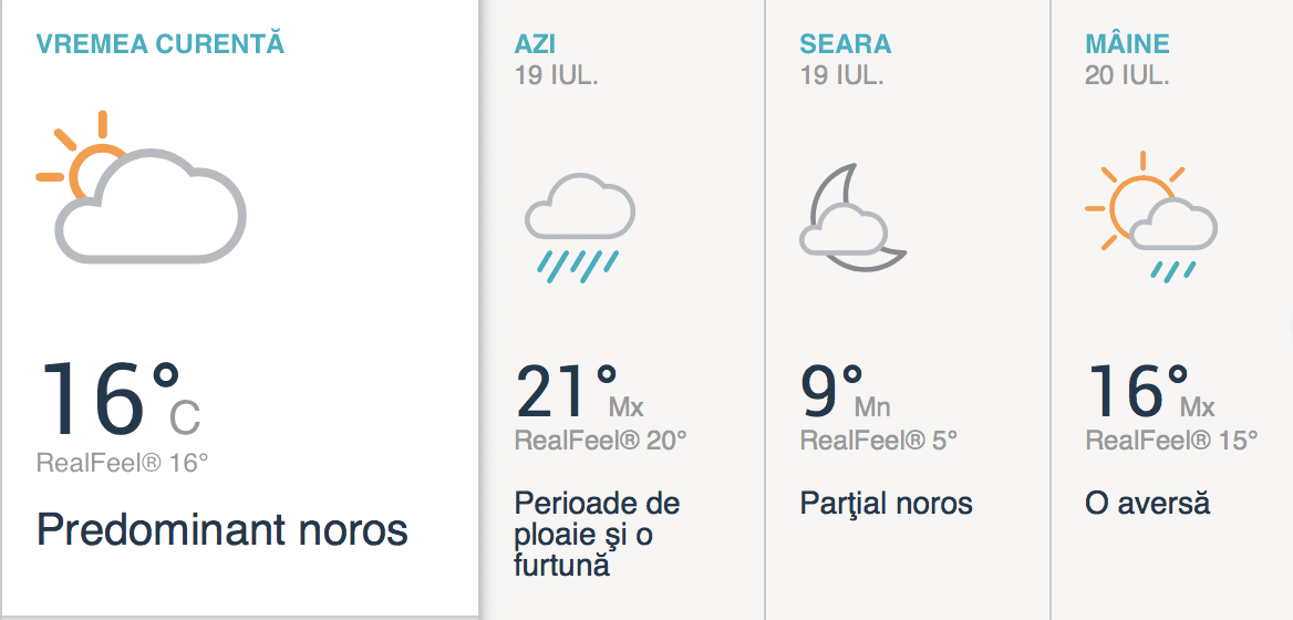 Ploile ș-au făcut apariția încă de pe timpul nopții, unele chiar cu caracter de aversă și vor continua și astăzi. Temperaturile ajung astăzi la 23 de grade.