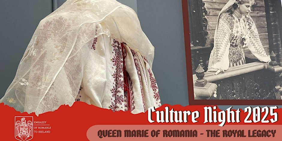 Ambasada României în Irlanda invită publicul la un eveniment cultural deosebit, organizat cu ocazia împlinirii a 150 de ani de la nașterea Reginei Maria a României, una dintre cele mai marcante figuri ale istoriei moderne a țării. Manifestarea face parte din celebrarea Nopții Culturii (Culture Night) și va avea loc vineri, 19 septembrie 2025, la Palmerston House, Denzille Lane/Fenian Street, în centrul Dublinului.