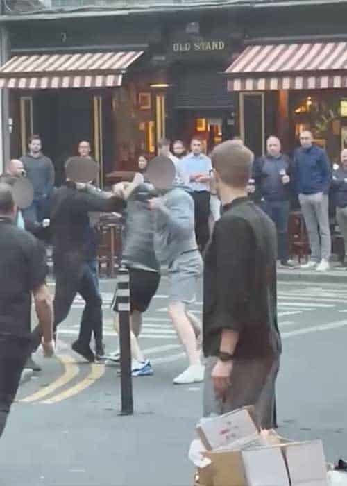 Un videoclip apărut online, arăta un grup de tineri urmărit de personalul unui local. O sticlă părea să fie aruncată în direcția personalului și un membru al personalului alerga după grup cu un scaun de bar.