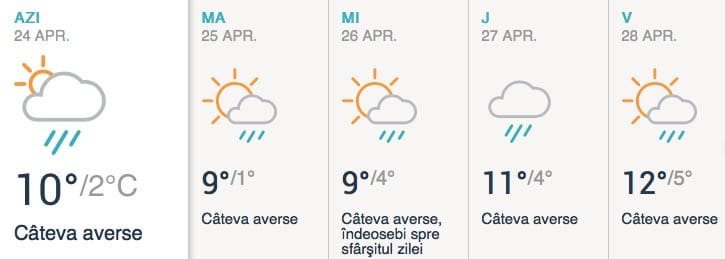 ✤ Astăzi o zi cu cer variabil și cu câteva averse de ploaie. Vremea puțin mai rece decât zilele trecute cu temperaturi maxime de 9-10 grade.