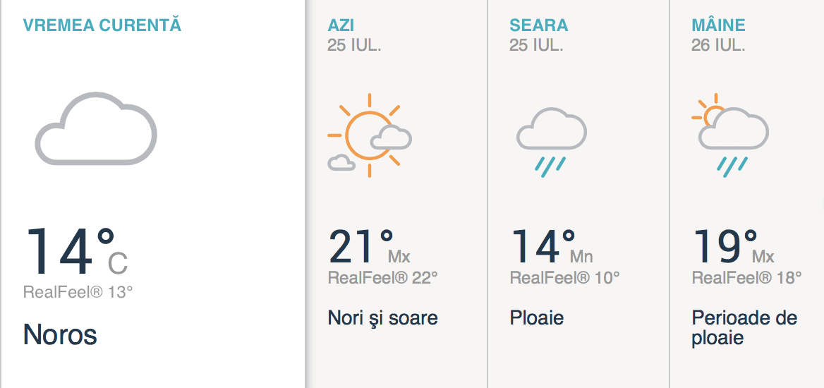 Astăzi va fi o zi în general frumoasă cu cer variabil. Spre seară posibil să apară o ploaie. Temperaturile maxime ajung astăzi la 21 de grade.