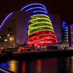 Centrul de Conferințe din Dublin luminat în culorile tricolorului românesc