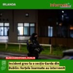 Un bărbat a amenințat personalul unei secții Garda din Blanchardstown, Dublin, declanșând o intervenție a forțelor înarmate și blocarea traficului. Incidentul s-a încheiat fără victime.