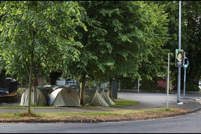 O nouă tabără de corturi pentru migranți a fost instalată peste noapte în Ballsbridge, Dublin, după ce ultima tabără de pe Grand Canal a fost desființată ieri. Opt corturi au fost amplasate pe un mic spațiu verde unde se intersectează Wellington Road, Clyde Road, Pembroke Park și Wellington Place.