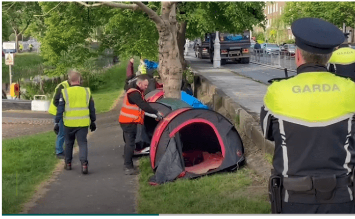 Într-o declarație, Biroul de Presă al Guvernului a spus: „O operațiune comună între Departamentul pentru Copii, Egalitate, Dizabilitate, Integrare și Tineret; Departamentul Justiției; An Garda Síochána; Executivul Regional pentru Problemele Persoanelor fără Adăpost din Dublin; Waterways Ireland; și HSE a început devreme în această dimineață pe Canalul Grand, Dublin.